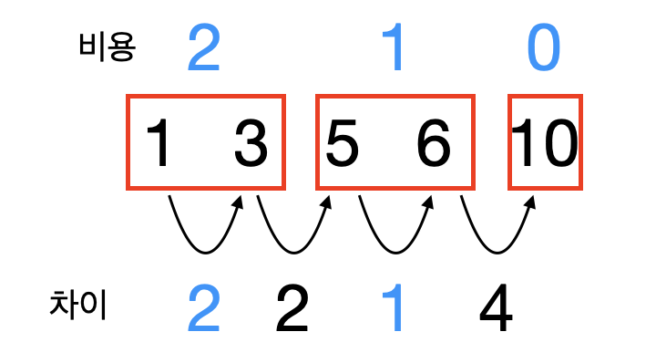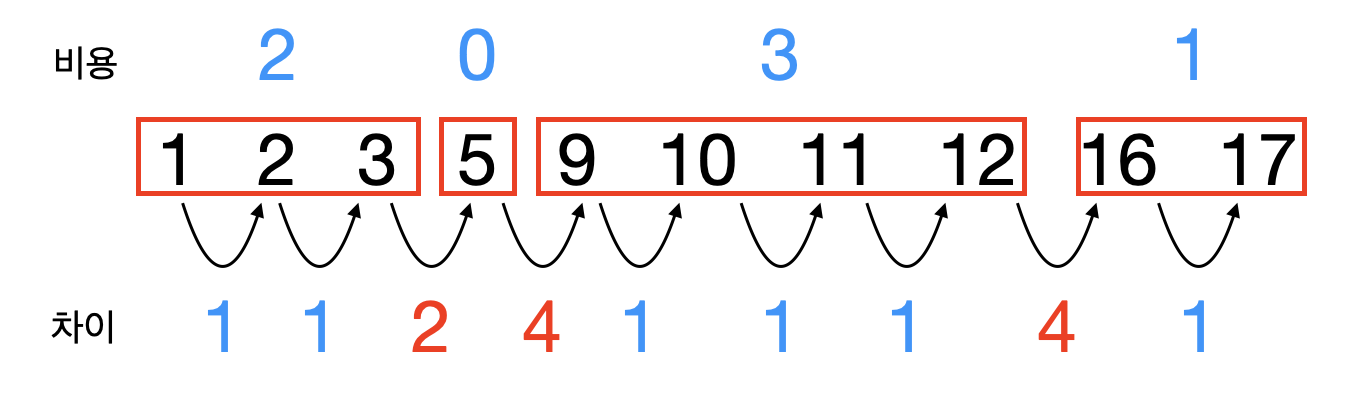 이때 최소 비용을 생각해보면 원생끼리의 차이 값이 그 값이라는 것을 볼 수 있다.